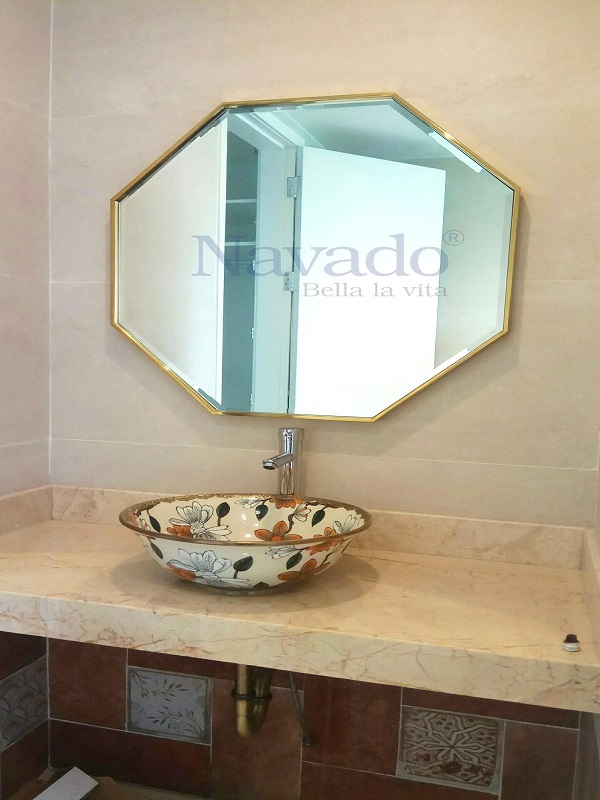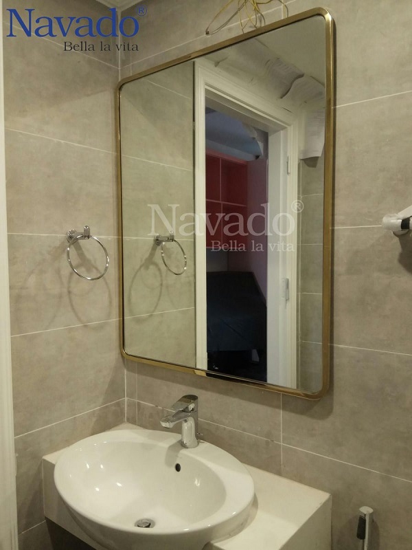 Khung gương kim loại: Được làm từ sắt, thép, inox hoặc mạ vàng, bạc, đồng khó bị biến dạng, méo mó trong quá trình sử dụng và giữ được độ bóng theo thời gian, mang đến vẻ đẹp sang trọng cho phòng tắm.